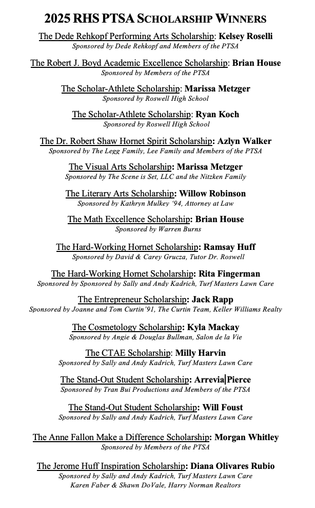 Congratulations 2024-2025 RHS PTSA Scholarship Winners! Share this: Click to share on X (Opens in new window) X Click to share on Facebook (Opens in new window) Facebook